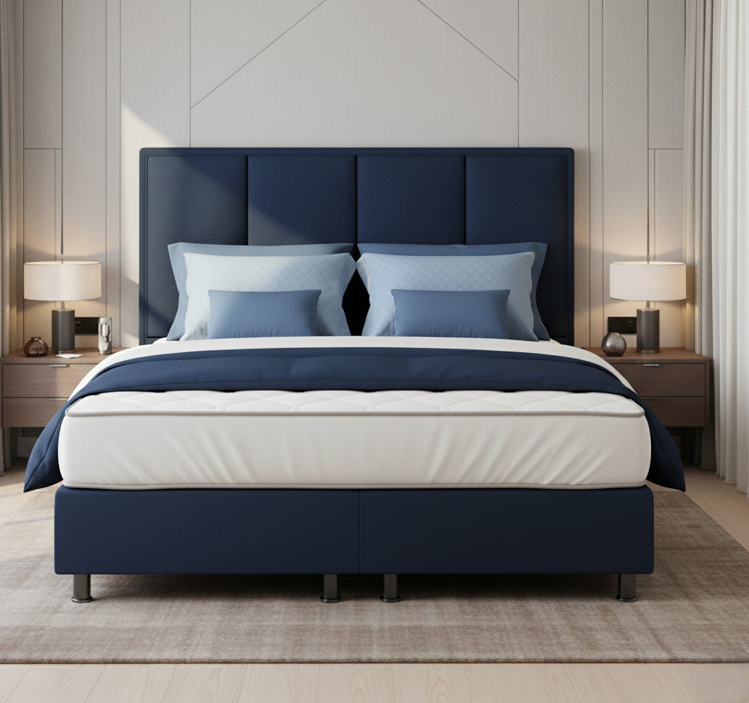 Waar design en dromen samenkomen. De Savile boxspring transformeert uw slaapkamer tot een statement van stijl en rust. Met zijn markante hoofdbord en tijdloze elegantie maakt u van elke nacht een meesterwerk.