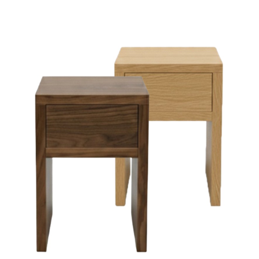 Nachtkastje Curzon met 1 lade soft close, verkrijgbaar in eiken of noten.